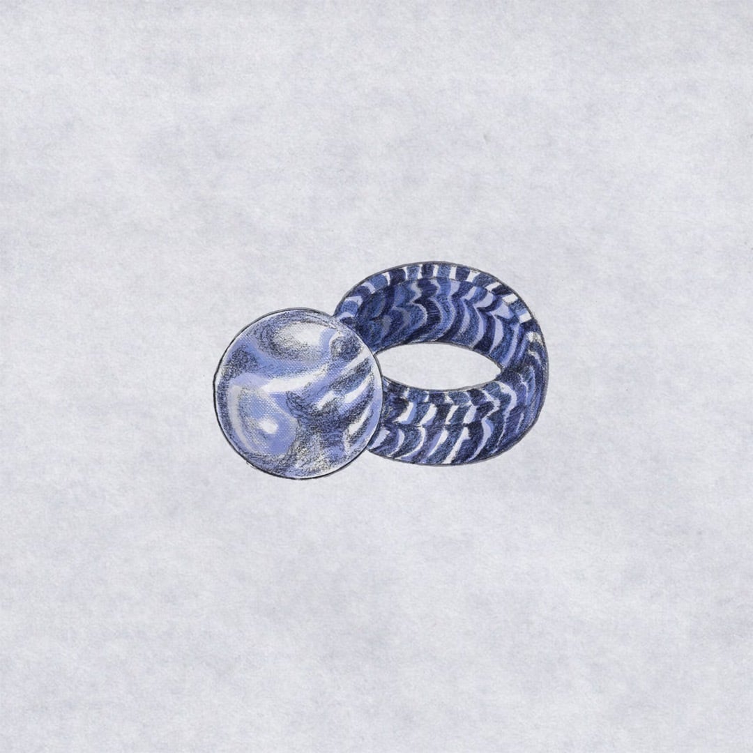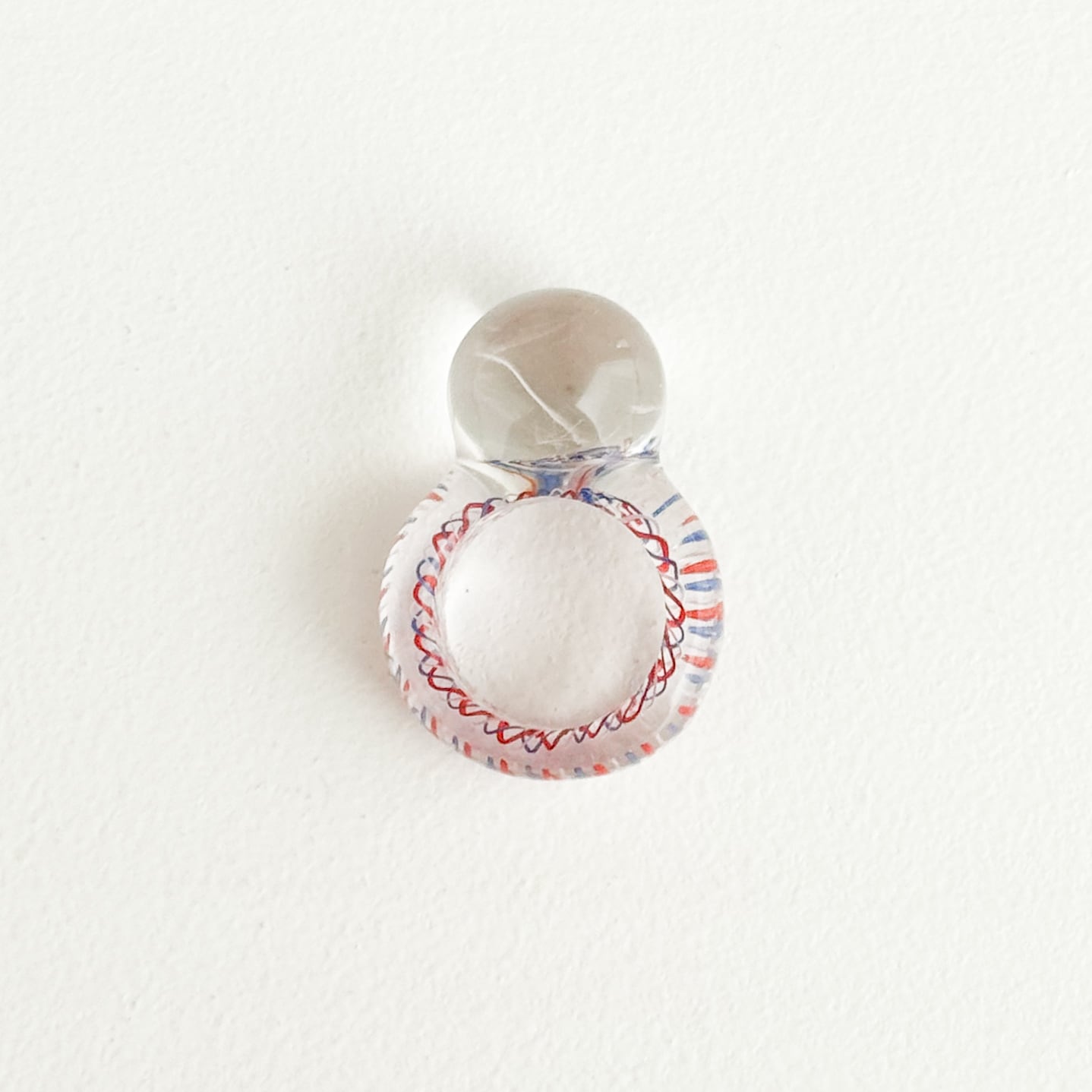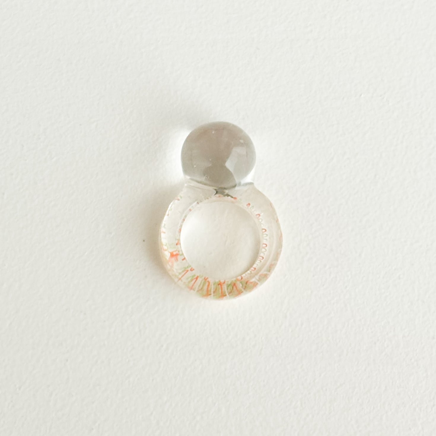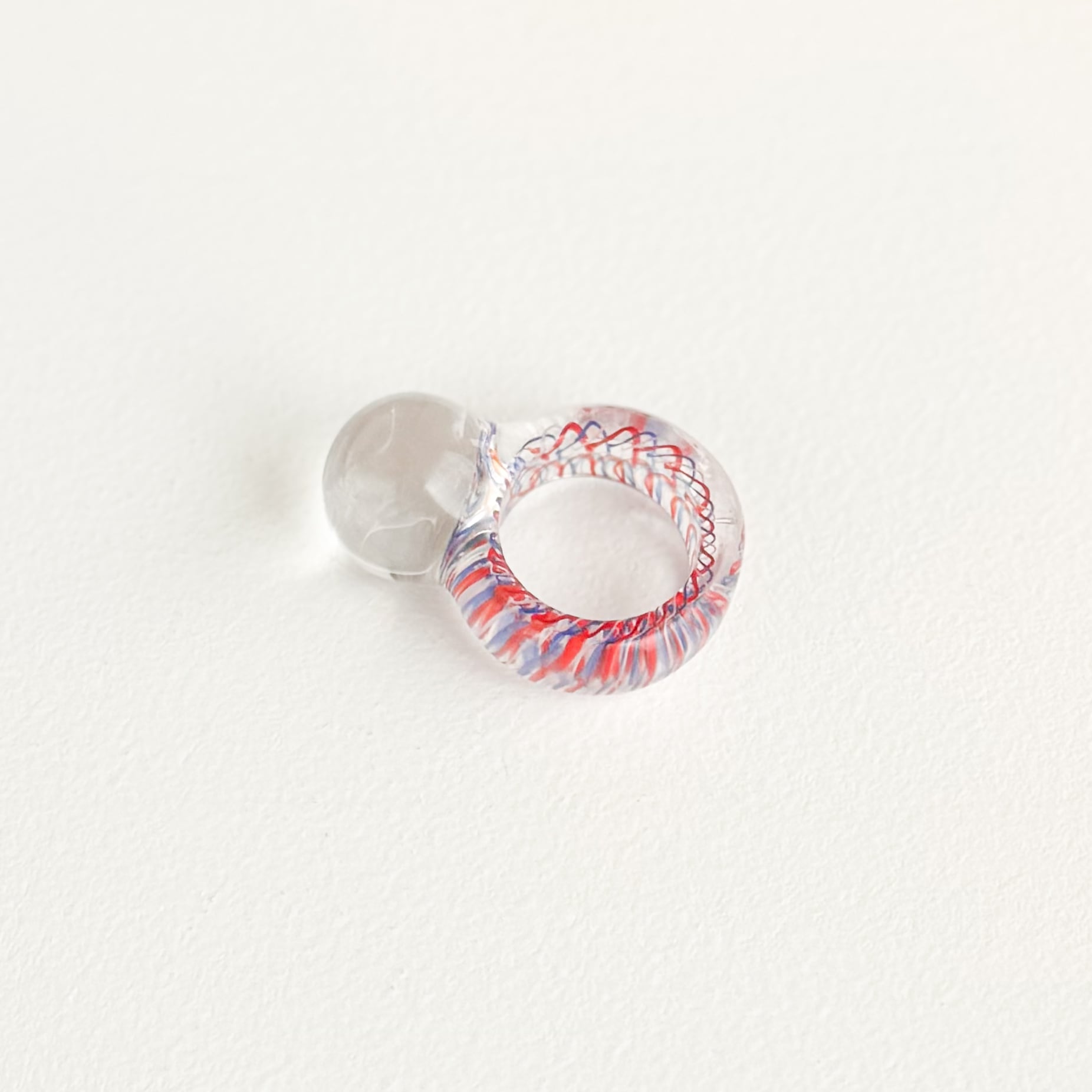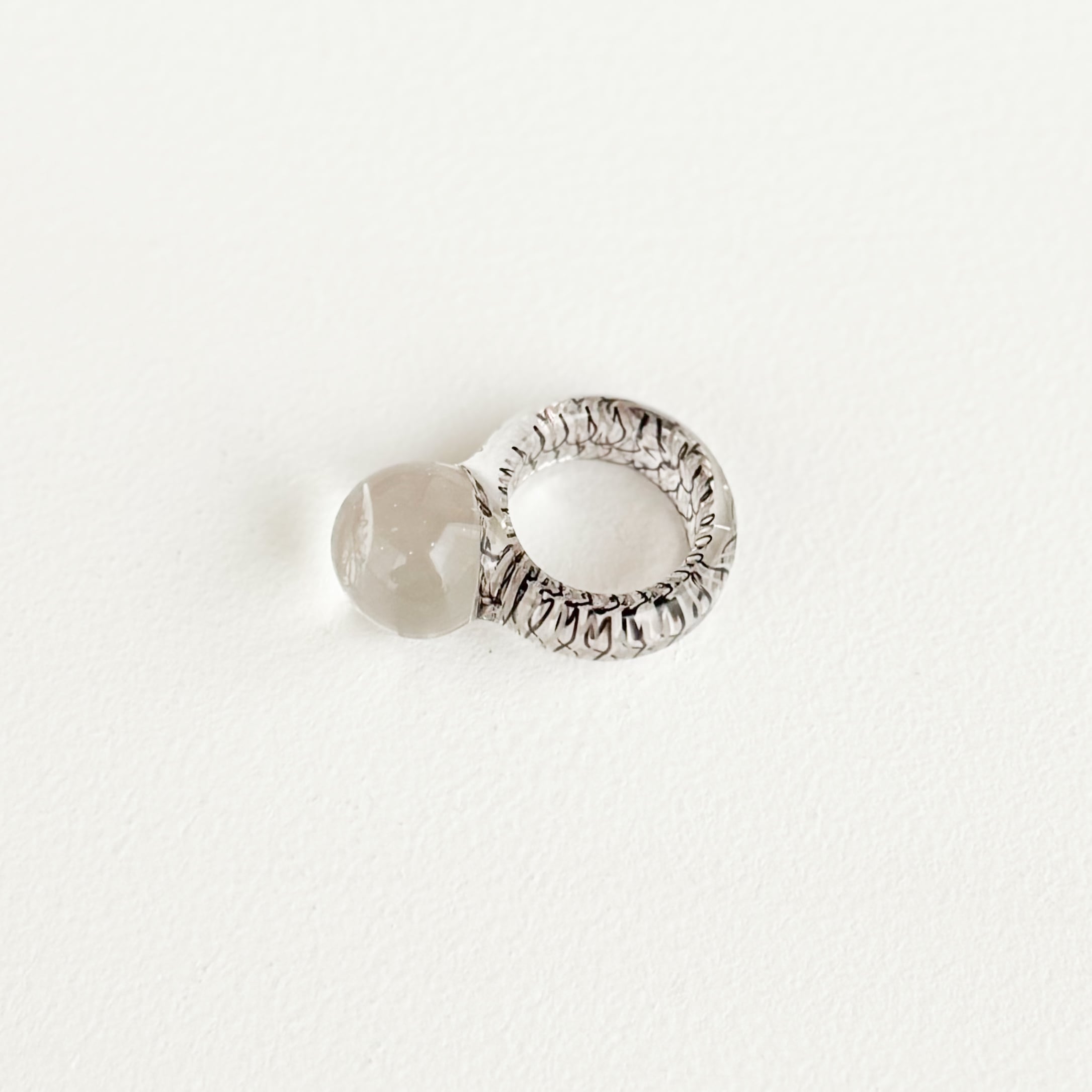 リングの内側にペンで描いたような線が閉じ込められていて、透明感の高いリングです。